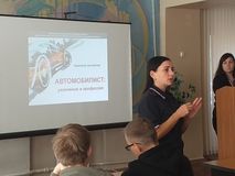 Заведующий библиотекой Аристова Л.А. познакомила ребят с выставкой «Главная дорога», где представлены книги и журналы по техническому обслуживанию и ремонту автомобилей, по организации перевозок пассажиров автомобильным транспортом.