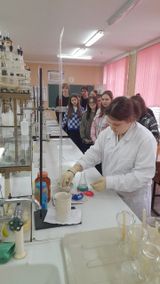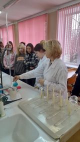 Преподаватель Бутко О.В. совместно со студентами 2 курса группы 34 специальности 18.02.07 Технология производства и переработки пластических масс и эластомеров провели мастер-класс «С химией на «Ты», где продемонстрировали интересные опыты. Под руководством наставников первокурсники составили химические реакции.