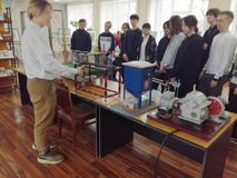 В читальном зале библиотеки студенты познакомились с выставкой научно-технических достижений «Мы это можем», где были представлены модели: беговой дорожки для собак, привода промышленного оборудования, погрузочно-разгрузочного механизма, системы полиспастов, мокрого пылеуловителя, беспроводного погрузо-разгрузочного механизма, тента для контроля прогиба вала часовым индикатором. Модели изготовлены студентами старших курсов специальности 15.02.12 Монтаж, техническое обслуживание и ремонт промышленного оборудования (по отраслям) в рамках занятий кружка научно-технического творчества «Вопросы науки и техники».
