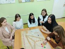 Студенты разделились на 4 команды и, делая ход, отвечали на вопросы про славянскую письменность. Участники игры очень активно отвечали на вопросы и показали свои знания в этой области.
