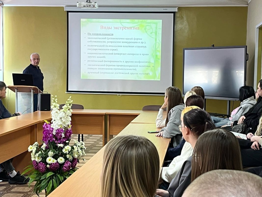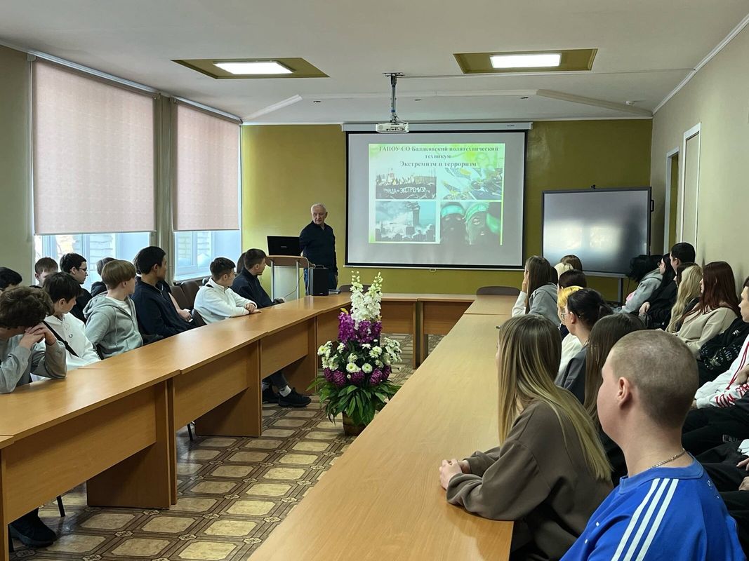 В рамках Всероссийской профилактической акции «Единый день профилактики безнадзорности и правонарушений несовершеннолетних» 16 января 2026 года педагог-психолог Мизинов В.В. провел занятие по профилактике терроризма и экстремизма среди молодежи на тему «Терроризм и экстремизм – угроза всему человечеству» с обучающимися I-II курсов гр.71 спец.15.02.07 Монтаж, техническое обслуживание, эксплуатация и ремонт промышленного оборудования (по отраслям), гр.72 спец.15.02.18 Техническая эксплуатация и обслуживание роботизированного производства (по отраслям), гр.65 спец. 38.02.07 Банковское дело.