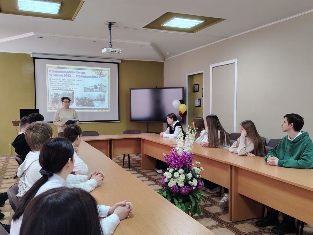 В целях продвижения и содействия чтению среди молодежи, а также в целях призыва молодого поколения хранить и преумножать славные традиции Отечества, отдавая дань памяти и уважения предкам ко Дню воинской славы – Дню разгрома советскими войсками немецко-фашистских войск в Сталинградской битве (1943 год), сотрудник межпоселенческой центральной библиотеки Светлана Солоницына провела для членов Центра допризывной подготовки и патриотического воспитания «Факел» ГАПОУ СО «Балаковский политехнический техникум» исторический хронограф «Немеркнущая слава Сталинграда».