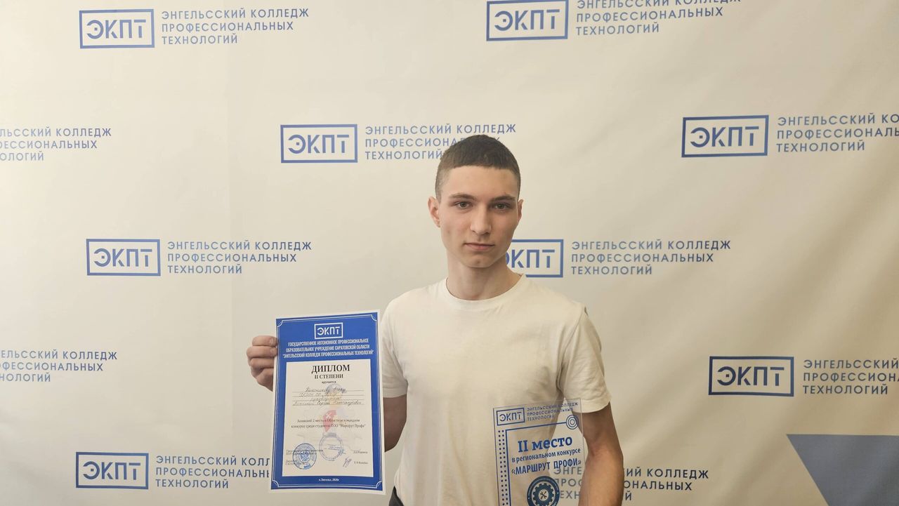 Поздравляем с успешным дебютом профессиональных испытаний Колесникова Егора и руководителя, подготовившего студента, преподавателя специальных дисциплин Ветелкина С.А. с заслуженной победой.